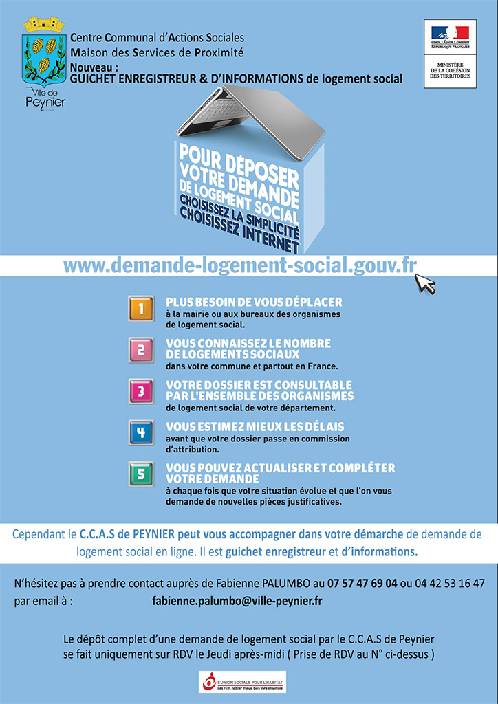 Le CCAS de Peynier dispose maintenant d’un accès au Système National d’Enregistrement de demande de logement locatif social (SNE) qui lui permet de devenir un guichet enregistreur et d’informations.