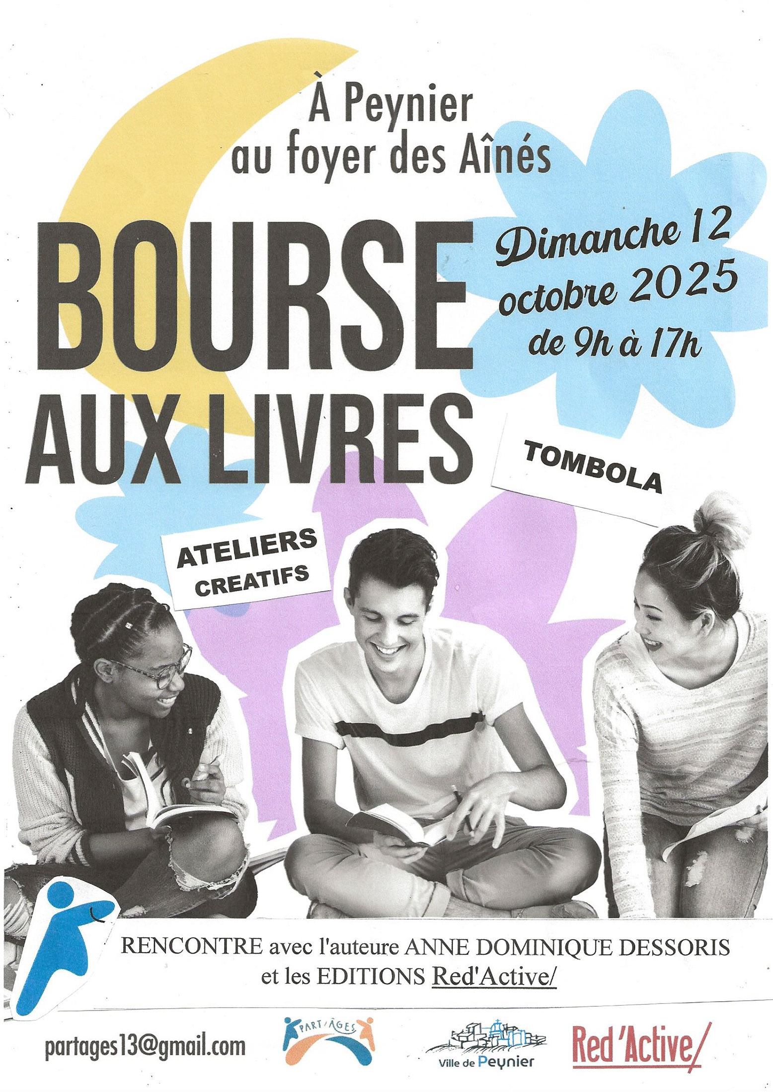 L’association Part/Âges et les éditions Red/Actives, a le plaisir de vous inviter à la 6ème Bourse aux Livres de Peynier, le dimanche 12 octobre, de 9h à 17h au Foyer des Aînés (quartier Notre Dame).