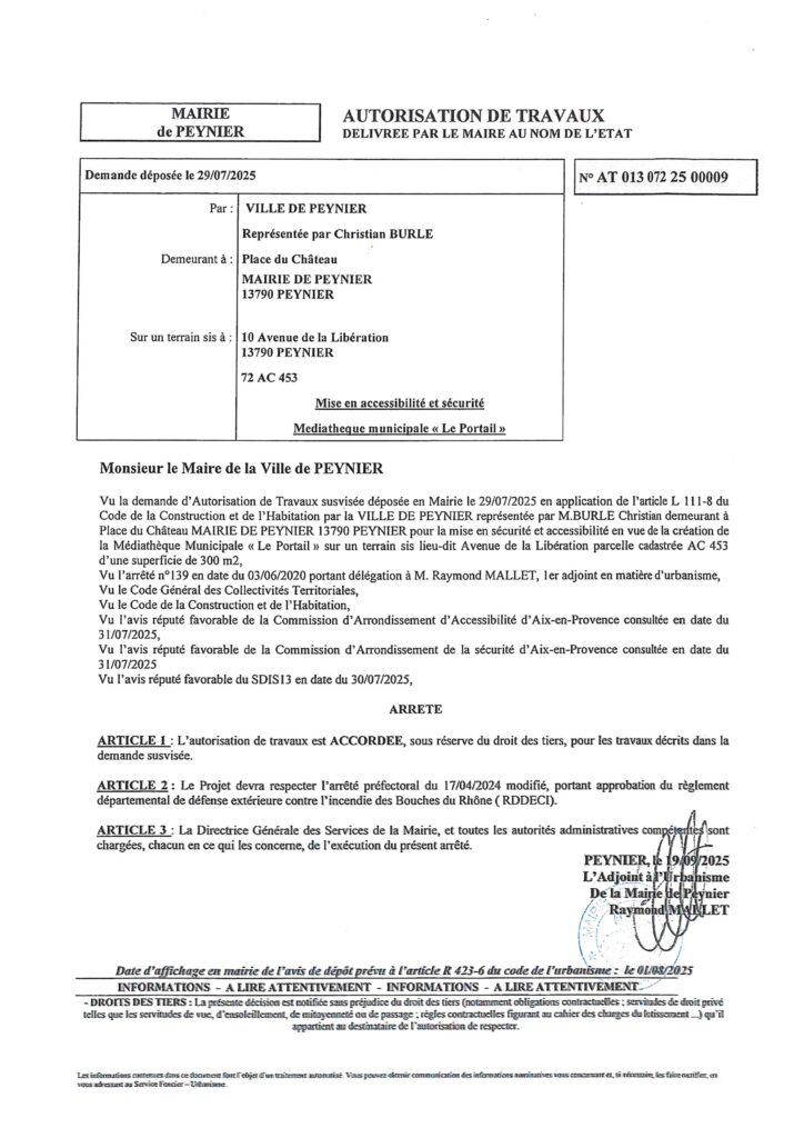 Autorisation de travaux délivrée par le Maire au nom de l’Etat.