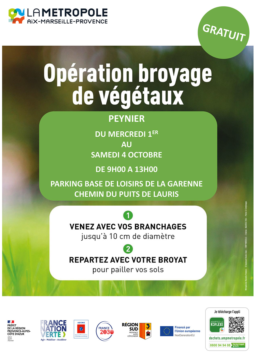Cette opération de broyage est une occasion pour les habitants de Peynier de valoriser leurs déchets verts tout en contribuant à la préservation de l’environnement. En participant à cette journée, chacun peut faire un geste concret pour la planète tout en s’alignant sur les objectifs de la Métropole. N’oubliez pas de vous munir de vos branchages et résidus de taille, pour repartir avec un broyat utile à votre jardin !