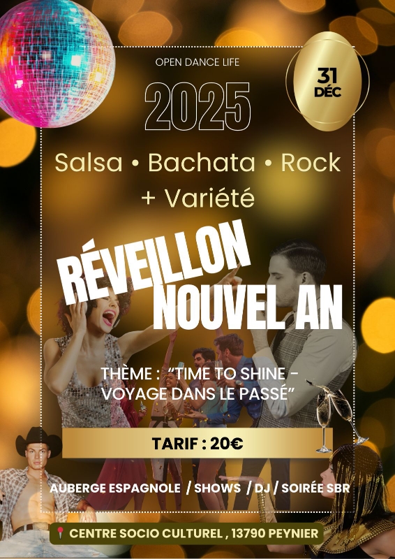 Après le succès du réveillon du 31 décembre 2024, qui a réuni plus de 180 participants au Centre Socio-Culturel de Peynier, Open Dance Life a le plaisir de vous annoncer le renouvellement de cet événement festif pour le 31 décembre 2025.