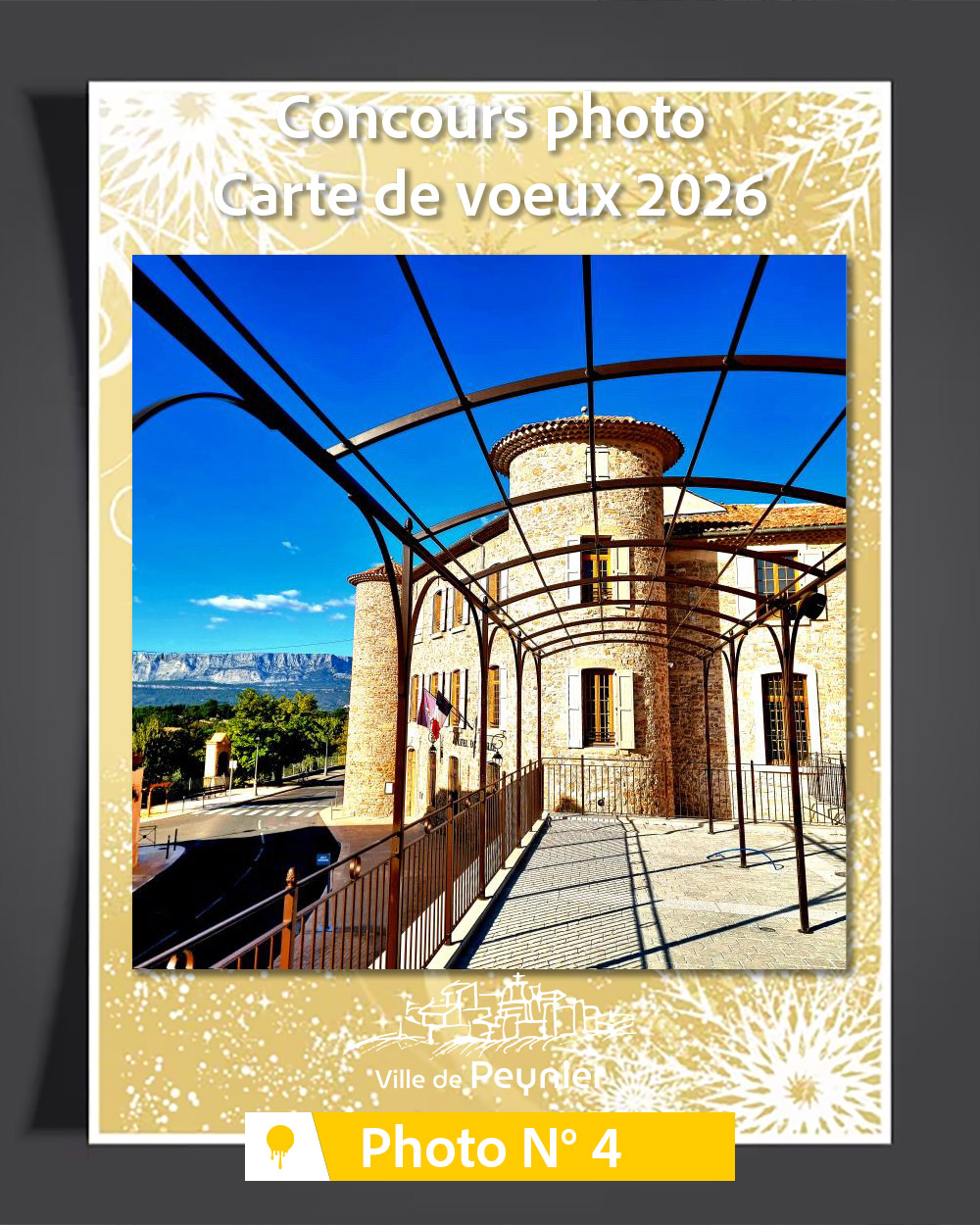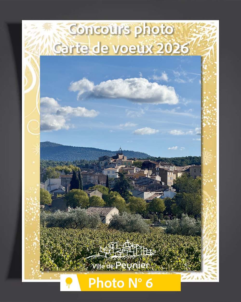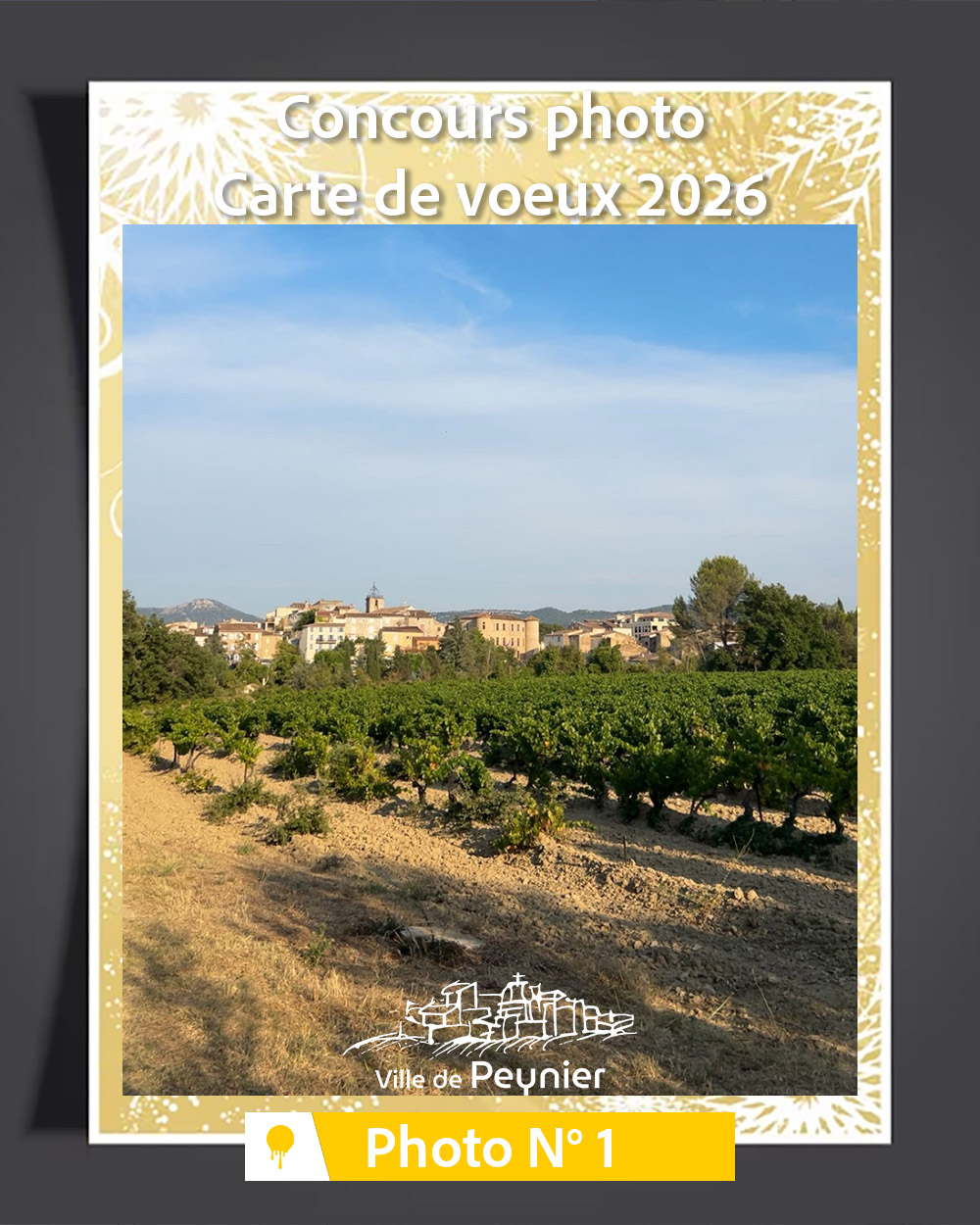 Sa photo illustrera la carte de vœux officielle 2026 de la Ville de Peynier, avec mention du crédit photo.