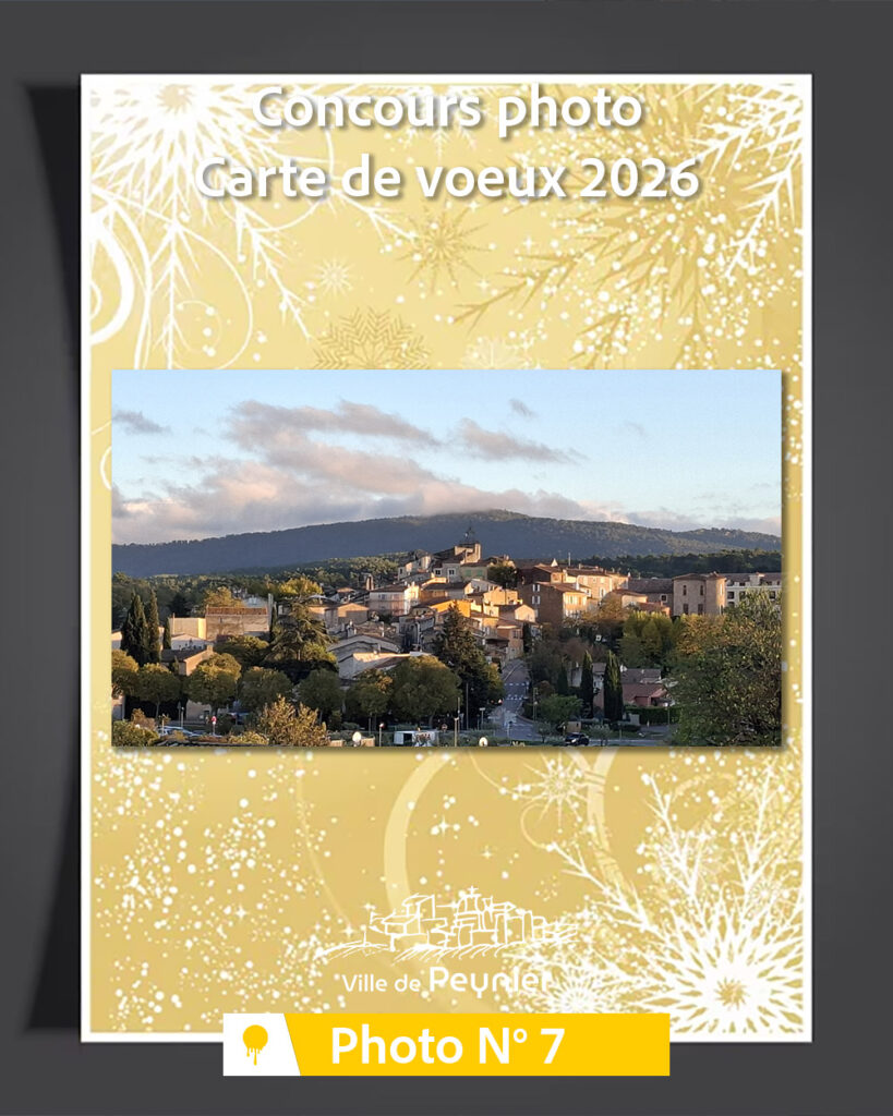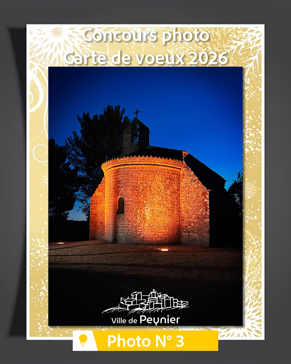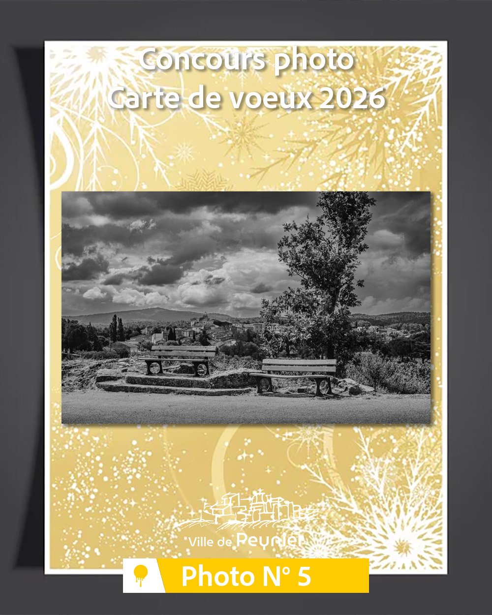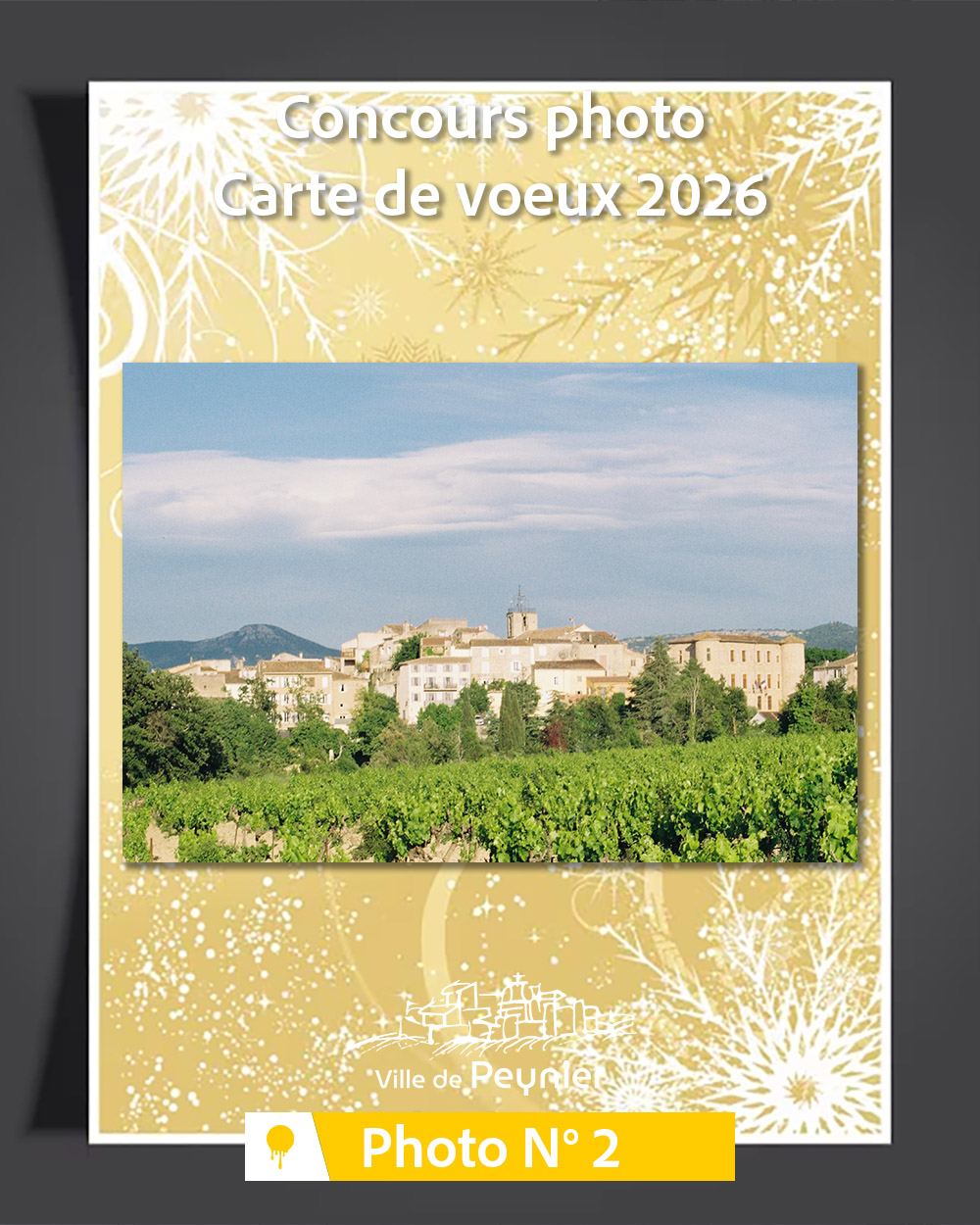 Sa photo illustrera la carte de vœux officielle 2026 de la Ville de Peynier, avec mention du crédit photo.