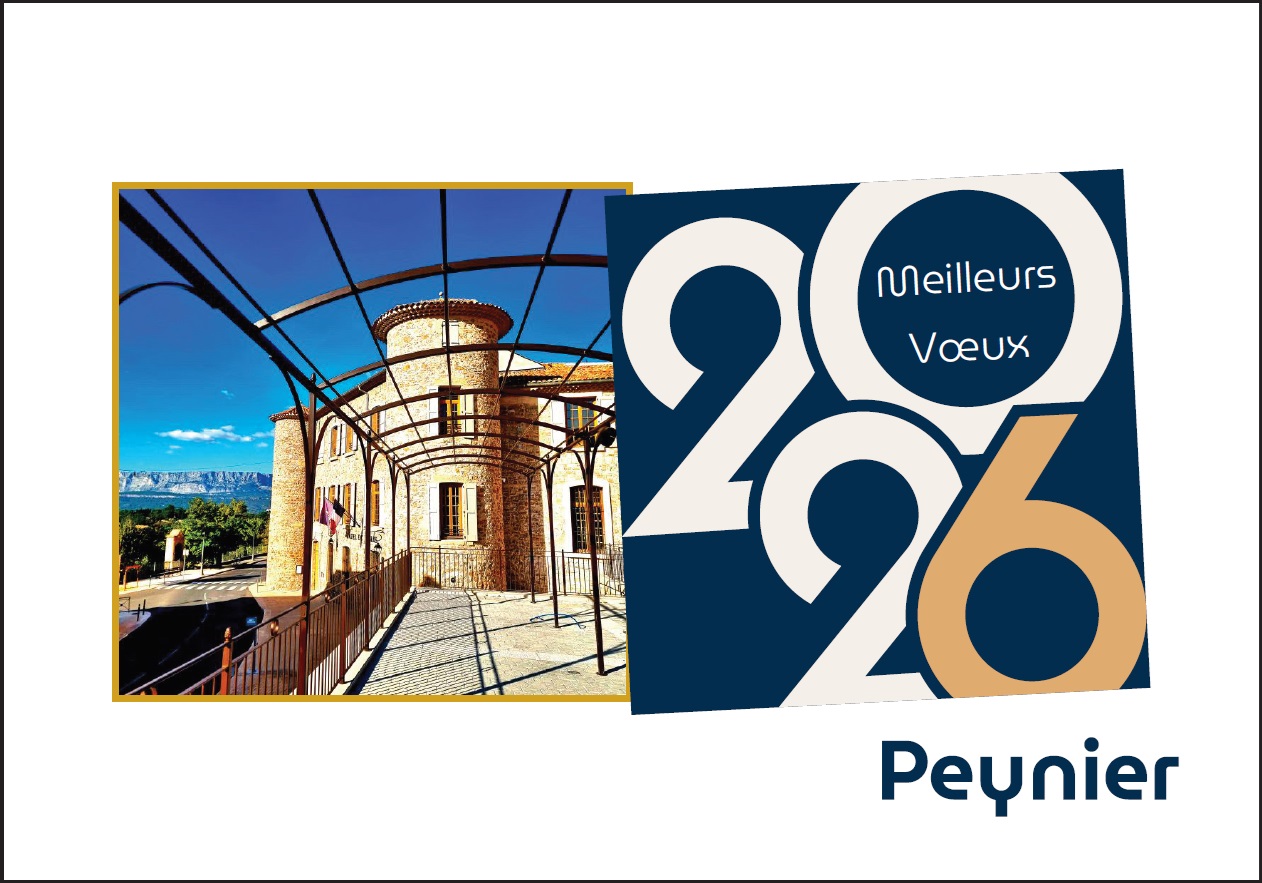 Comme il est de tradition, vous avez reçu ces derniers jours dans votre boite aux lettres la carte de vœux de notre village de Peynier accompagnée de l’invitation à la cérémonie des vœux du Maire. Nous serions très heureux de vous accueillir le vendredi 9 janvier 2026 à partir de 18h30 au Centre Socio-Culturel de Peynier.