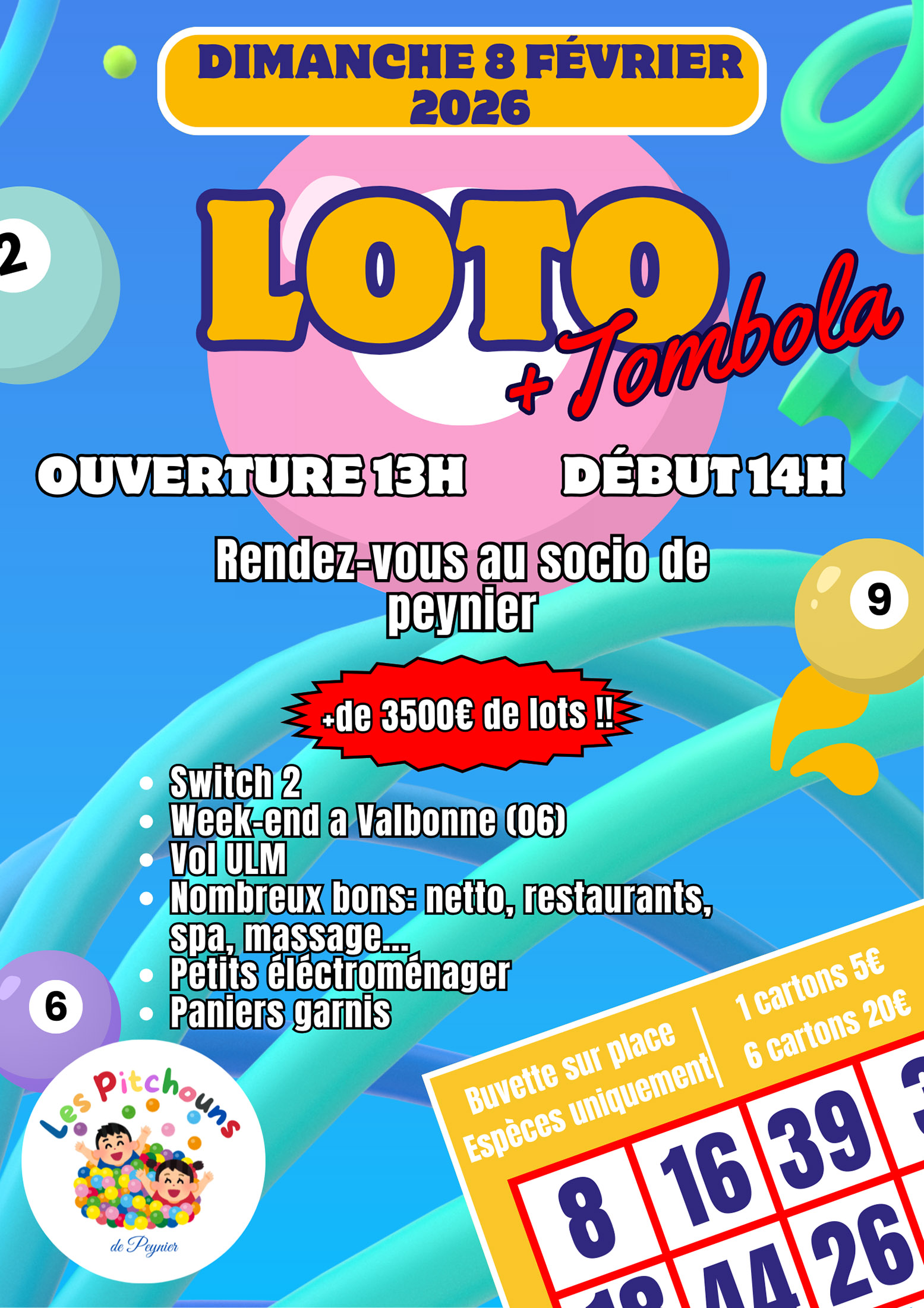 L’association « Les Pitchouns de Peynier » organise un super LOTO le dimanche 8 février 2026 à 14h au Centre Socio-Culturel.