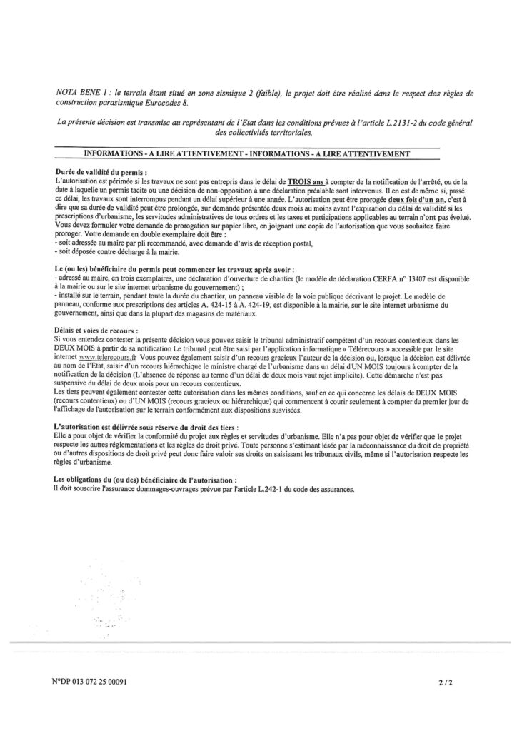 Décision de non opposition à déclaration préalable délivrée par le Maire au nom de la Commune.