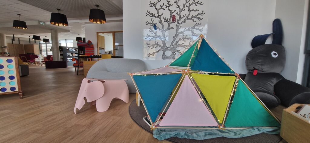 Jolie n’est-ce pas ?! Cette cabane est gratuitement prêtée à la médiathèque par Chloé, maman, sculptrice et styliste déco.