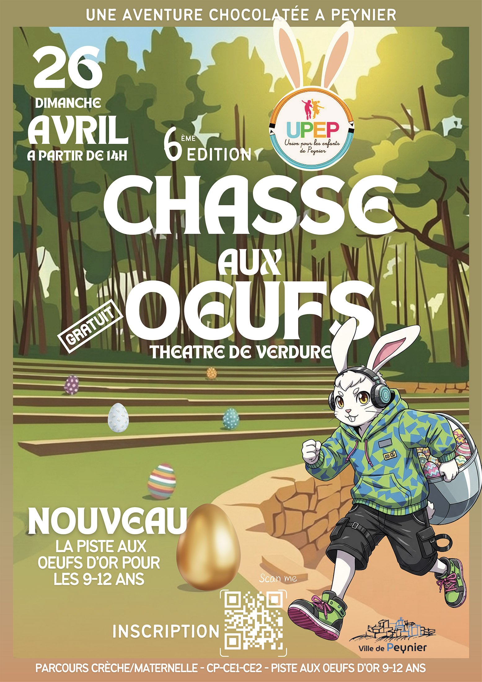 L’UPEP (Union Pour les Enfants de Peynier) organise la 6e édition de la chasse aux œufs le dimanche 26 avril 2026 à partir de 14h au Théâtre de Verdure, sur la Base de Loisirs de la Garenne.