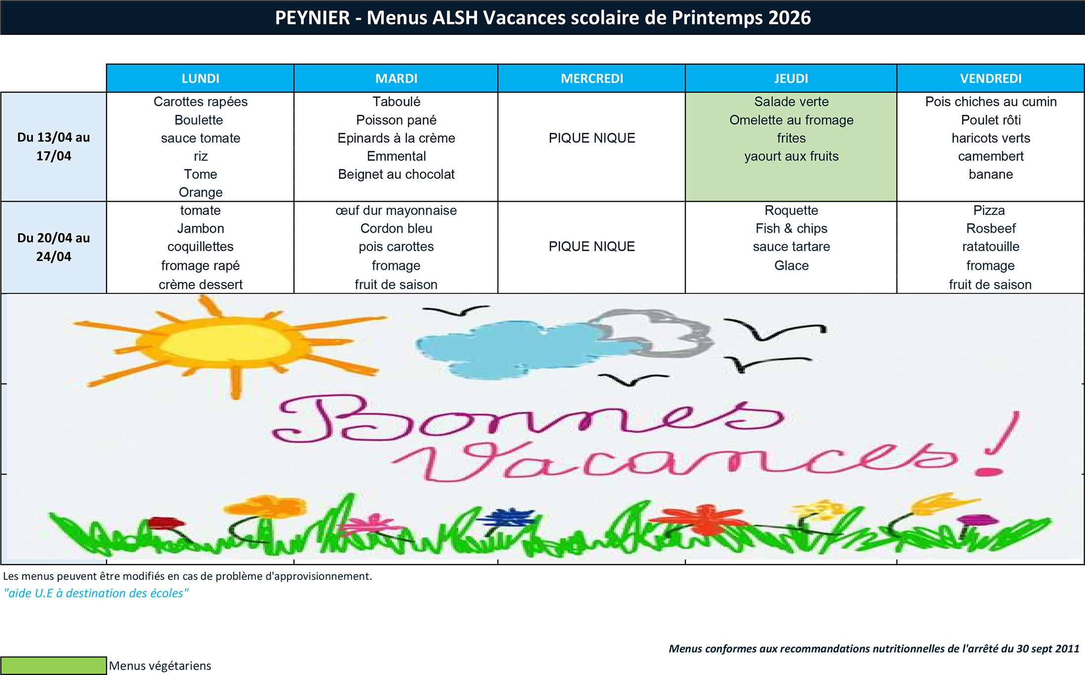 Tous les menus proposés sont conformes aux recommandations nutritionnelles de l’arrêté du 30 septembre 2011.