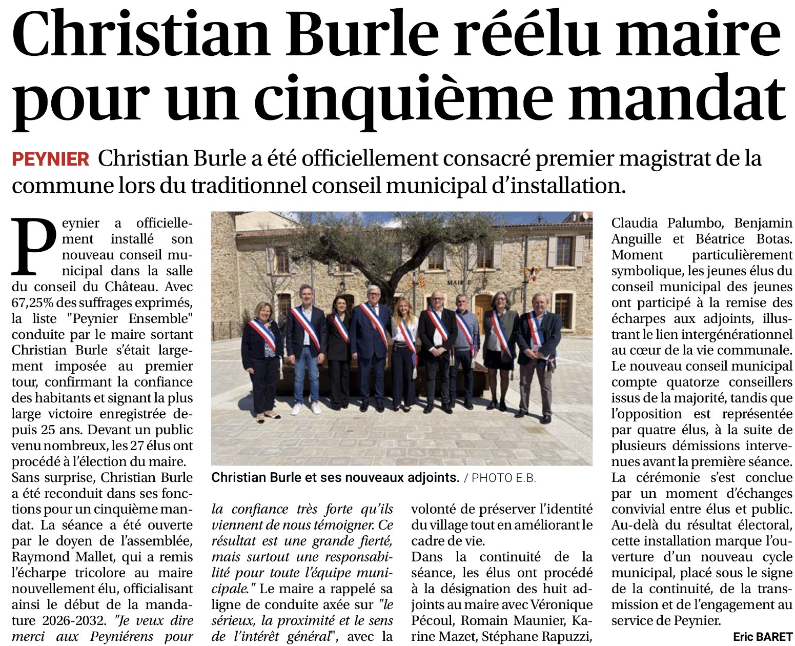 Article paru dans le journal La Provence édition d’Aix du 27/03/2026 par Eric BARET.