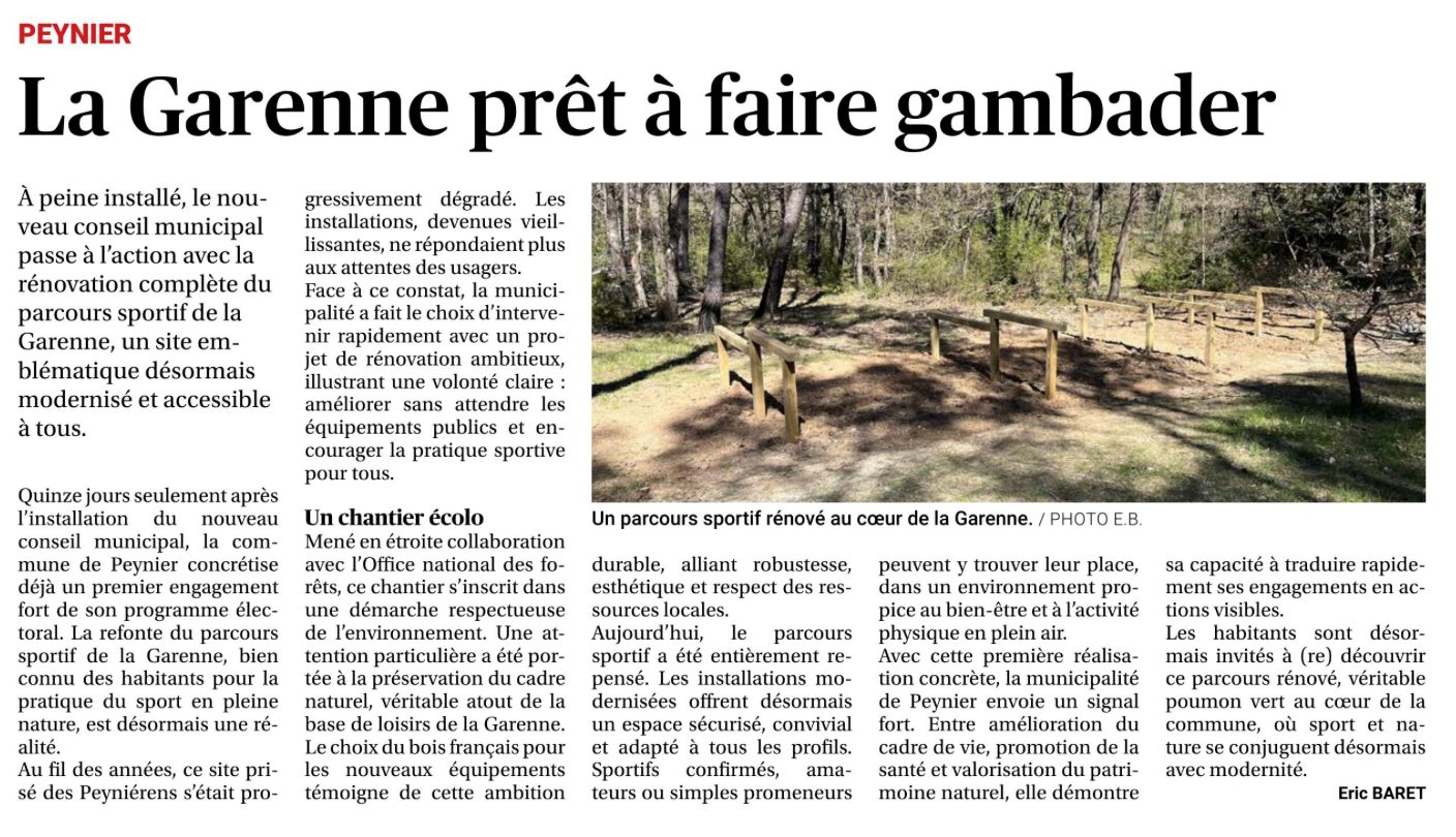 A la unePEYNIER infosActualitésPresse La Garenne prêt à faire gambader Par PEYNIER Communication - 13 avril 2026 Partagez FacebookTwitterWhatsAppEmailPrint Article paru dans le journal La Provence édition d’Aix du 13/04/2026 par Eric BARET.